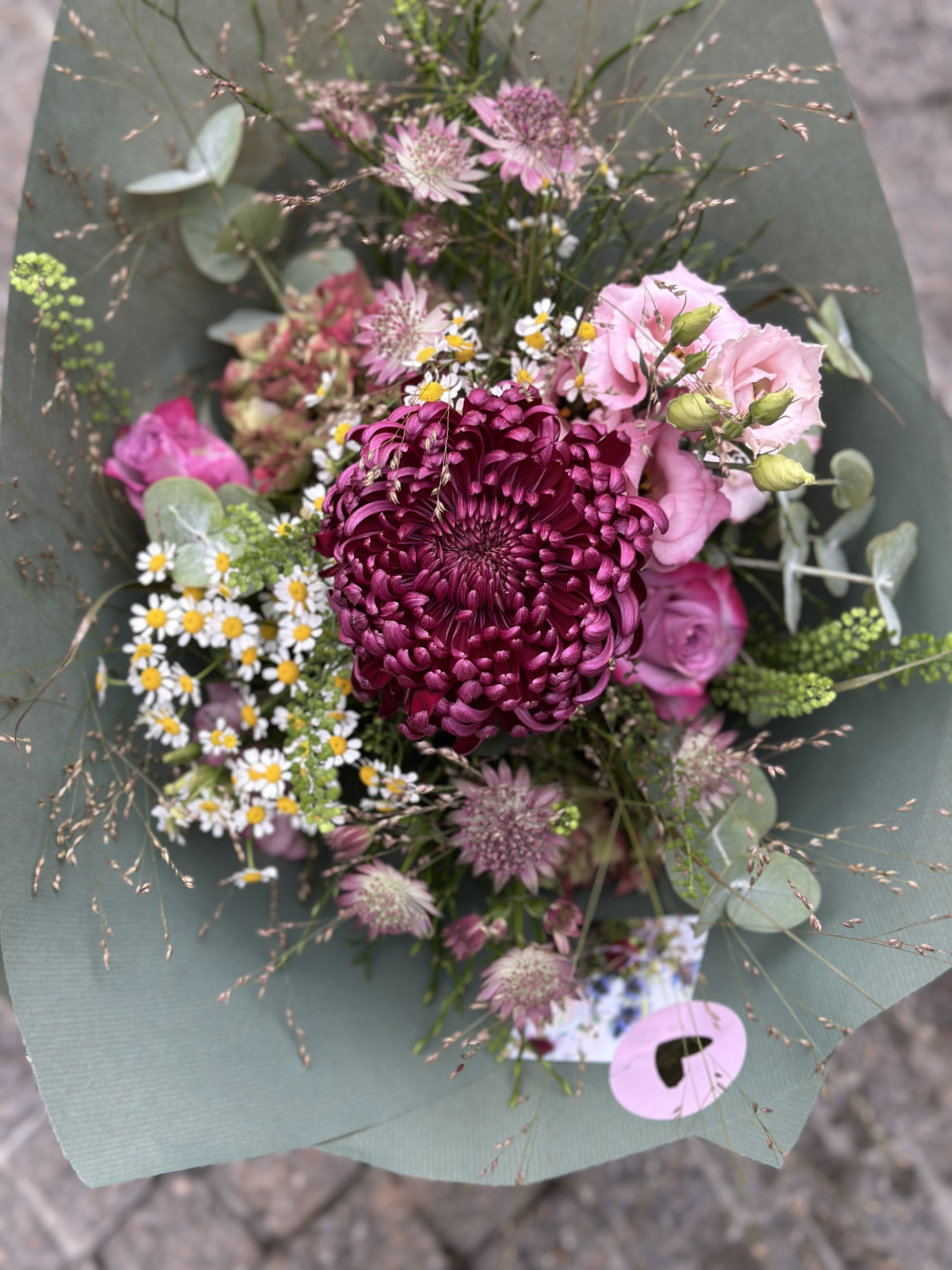 Aus der aktuellen Blumenauswahl binde ich Ihnen einen locker, leicht und liebevoll arrangierten Blumenstrauß.